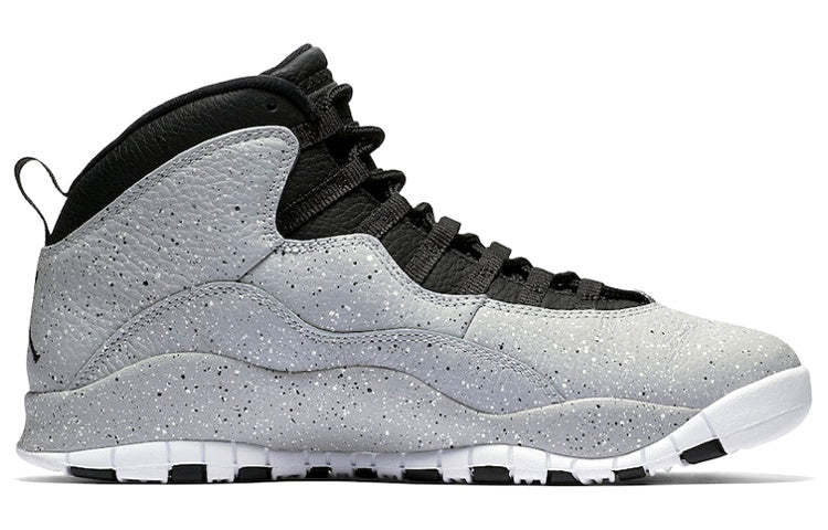 Nike Air Jordan 10 Retro Cement Featuring clean lines and lateral stripes on the soles as a tribute to Jordan, the Air Jordan 10 was designed while MJ was away from the game.