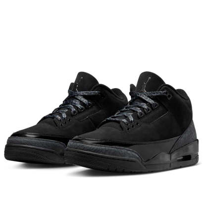 The Air Jordan 3 "Black Cat" returns in Spring 2025! This iconic 2007 design, inspired by Michael Jordan's nickname, features a sleek black and dark charcoal nubuck upper, elephant print, and patent leather overlays. A black sole with white Jordan branding completes the look.