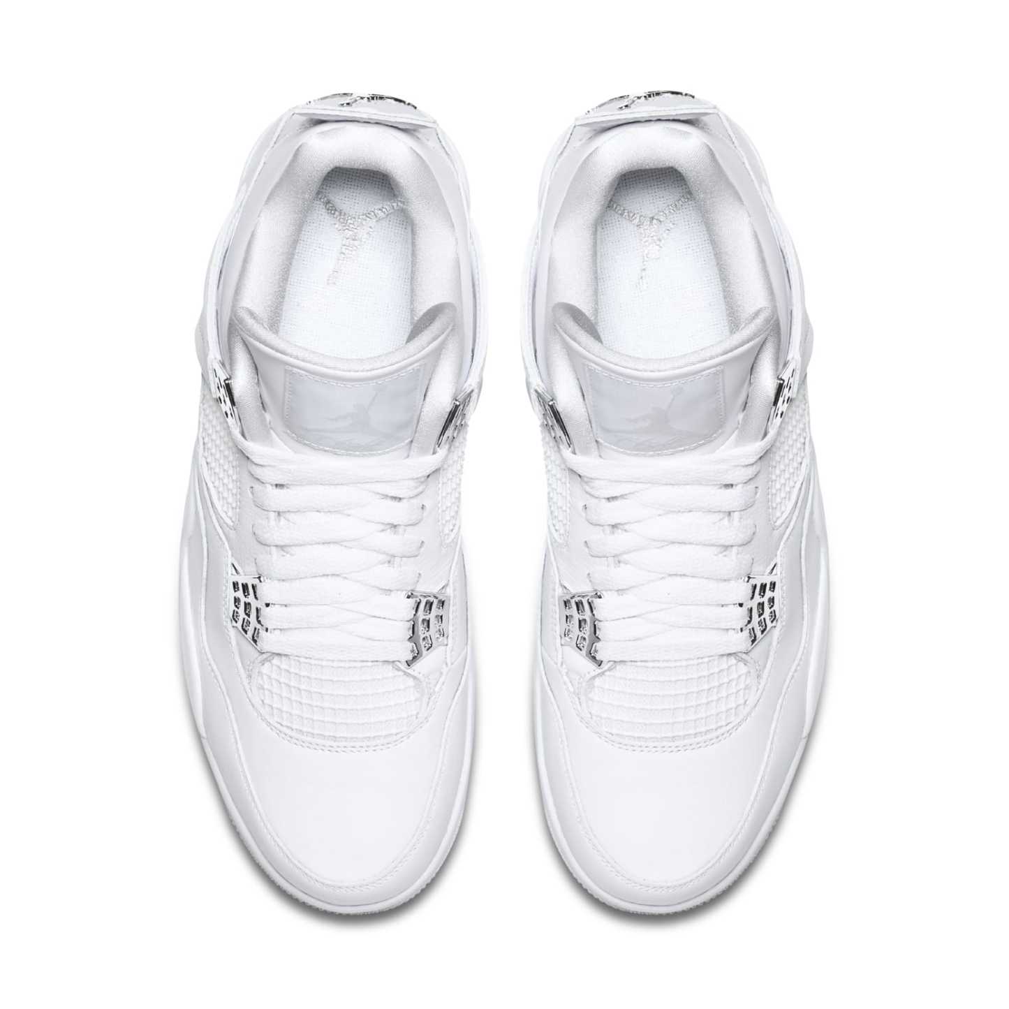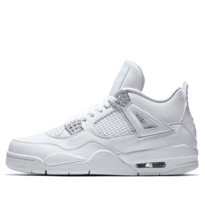 The Air Jordan 4 Retro is a retro version of the classic Air Jordan 4. Released in 2017, this sneaker features a white leather upper with a white rubber sole. First introduced in 2006, this 2017 version of the shoe also includes chrome eyelets, a chrome Jumpman on the heel, and ‘Pure$’ stitched on the inside of the back tabs - a clear reference to the retail price point of these shoes. Despite their high price tag, the Air Jordan 4 Retro is still one of the most popular sneakers on the market, due to its clean lines and timeless design.