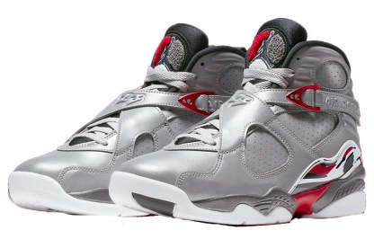 Paying homage to Michael Jordan's early NBA championships, the Air Jordan 8 "Bugs Bunny" gets a reflective silver makeover. Retaining the original tongue pattern and graphic panels throughout the body, the "Reflective Bugs Bunny" features a flashy reflective upper.