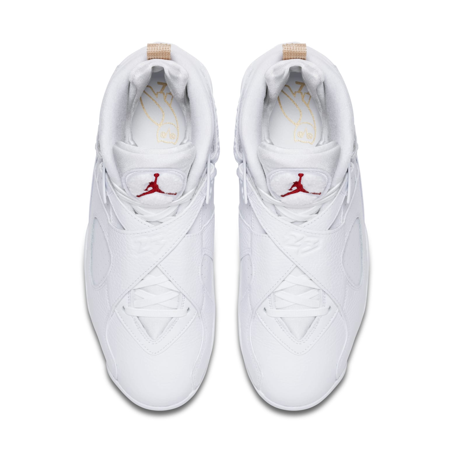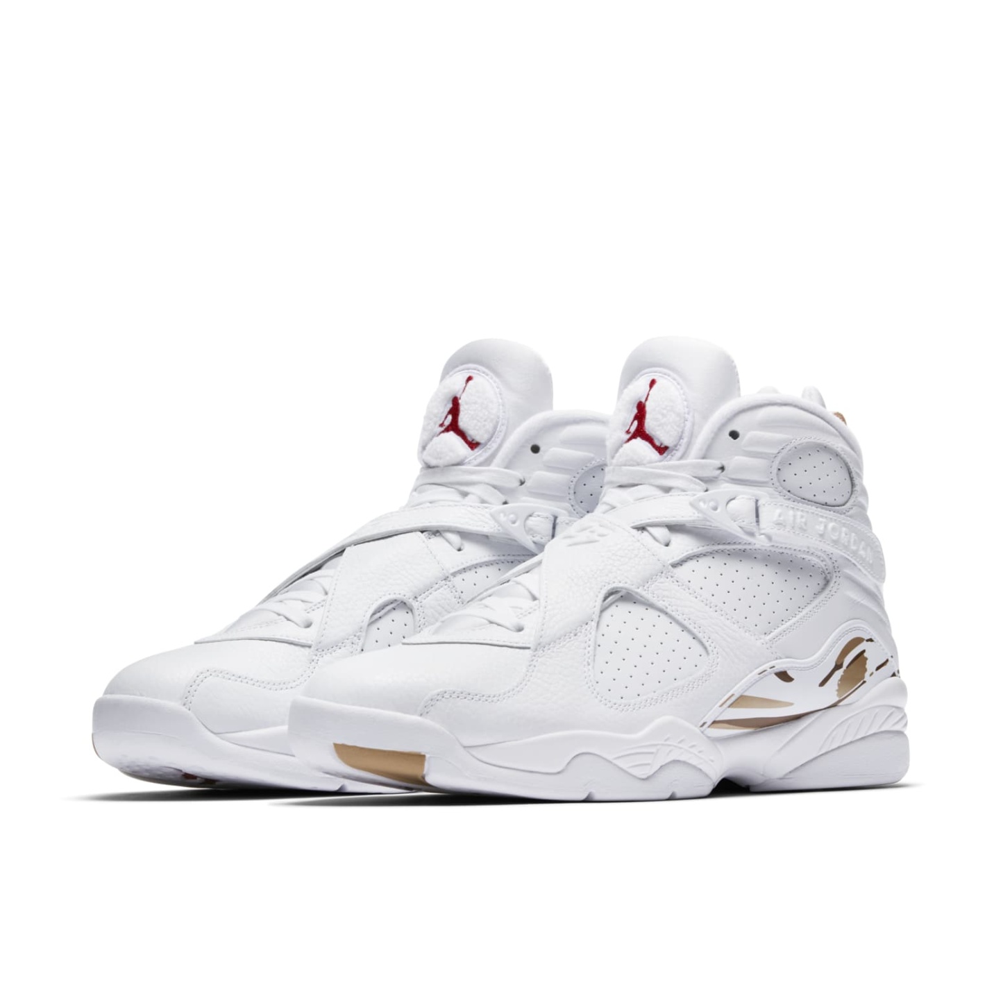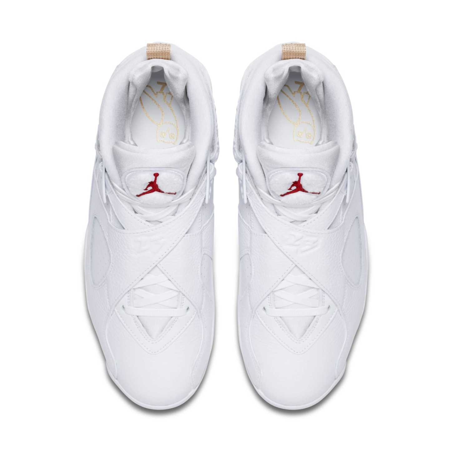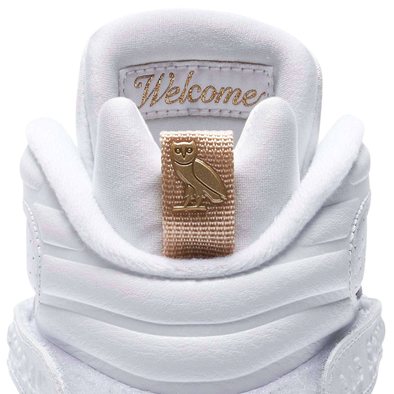 The Jordan Brand and world-renowned hip-hop artist Drake have teamed up to create a one-of-a-kind shoe in honor of the NBA All-Star weekend. The OVO x Air Jordan 8 Retro 'White' is a work of art, featuring black suede and tumbled leather upper with red accents on the Jumpman logo at the tongue, metallic gold accents on the toe box, heel pull tabs, and on a paintbrush-stroke pattern at the midfoot. The high top also boasts a strap across the ankle, a black rubber midsole, and OVO branding and owls throughout. This shoe is perfect for Drake fans and Air Jordan enthusiasts alike.