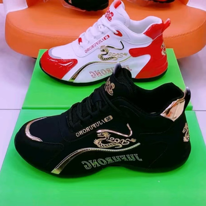 APHthtROT Golden Dragon Embroidery Couple Comfortable Running Sneakers