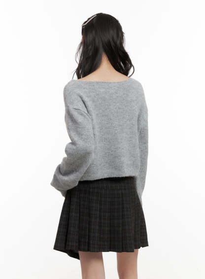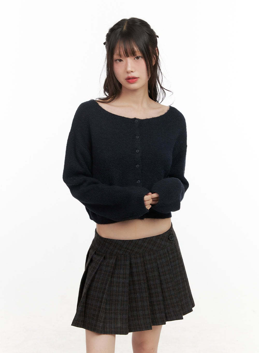 Boat-Neck Buttoned Knit Cardigan CJ501