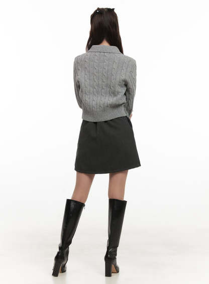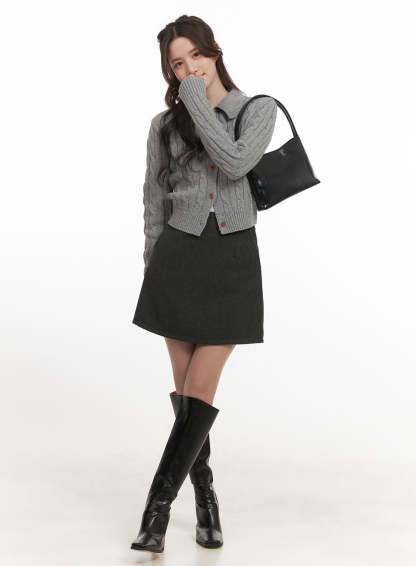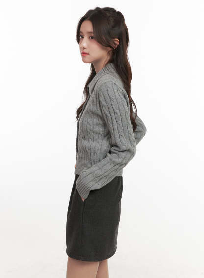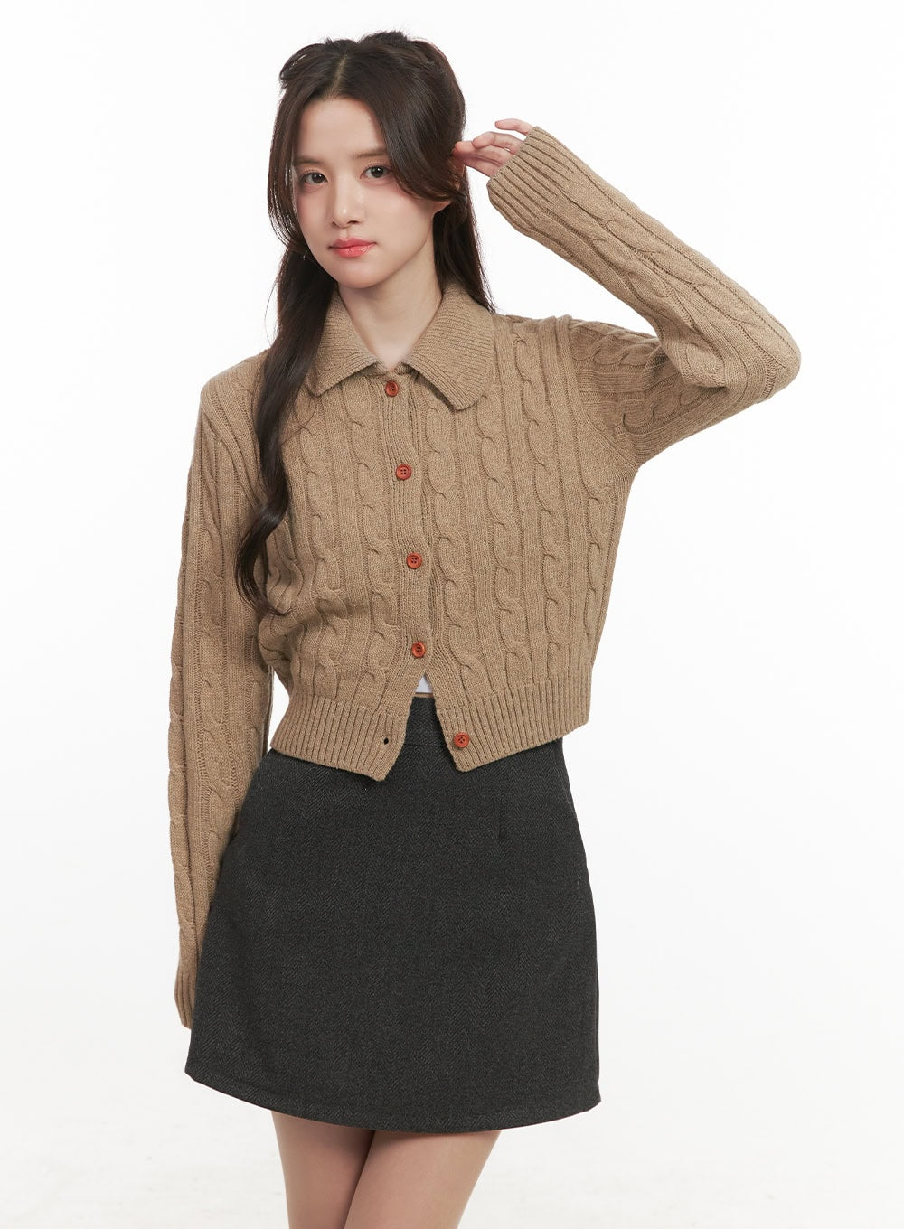 Cable-Knit Collared Buttoned Cardigan CJ514