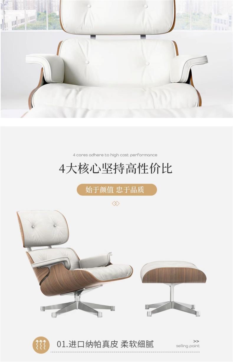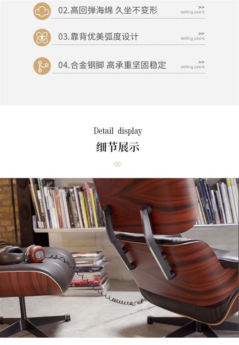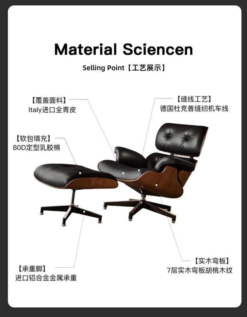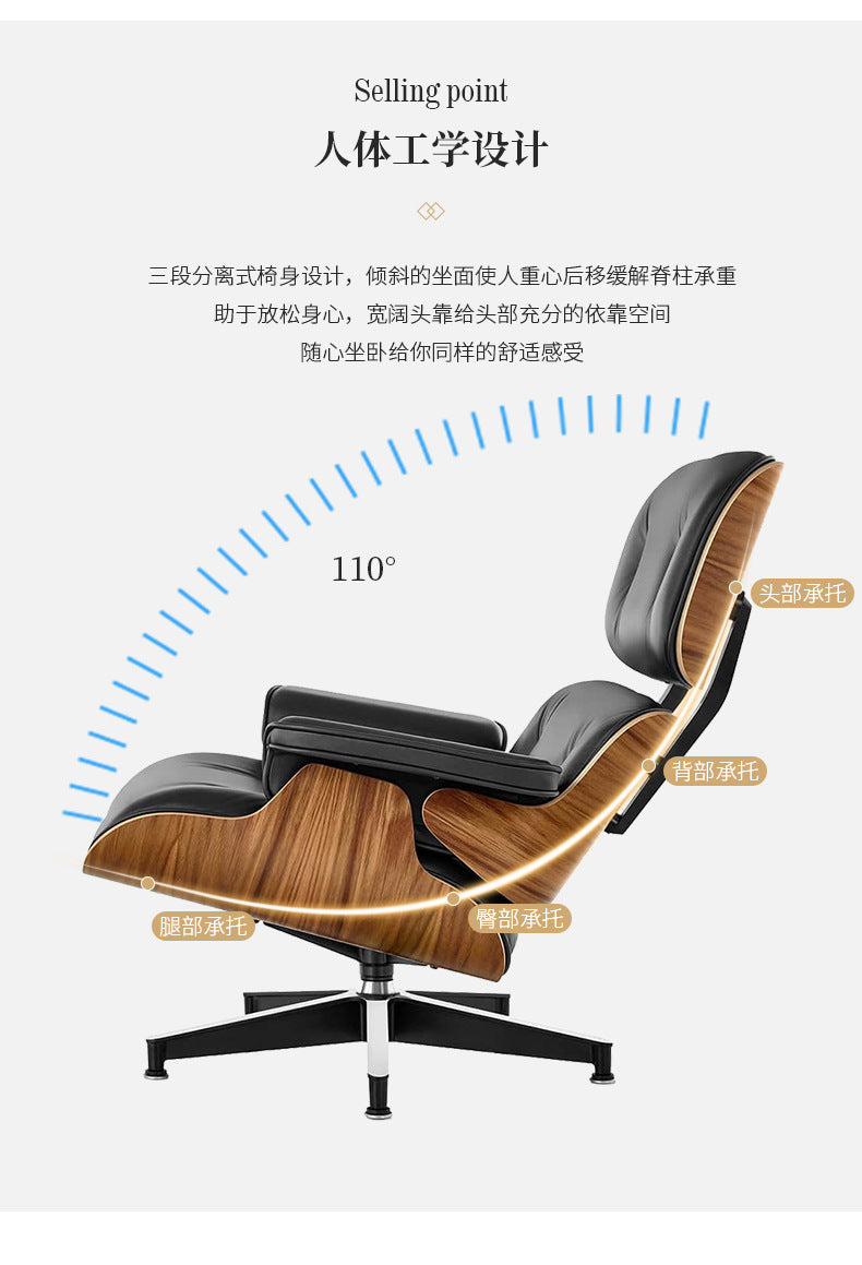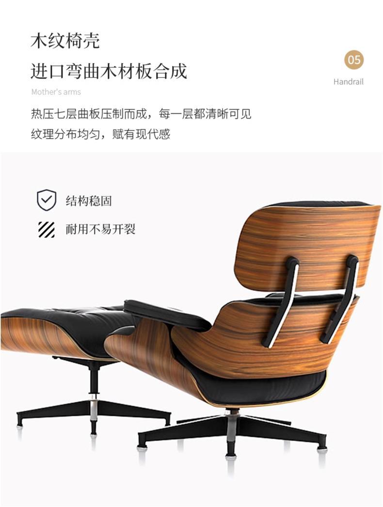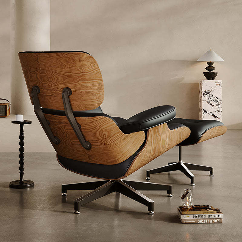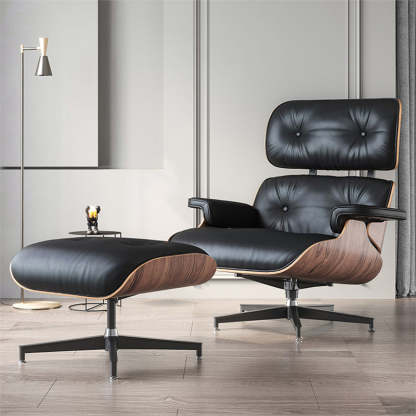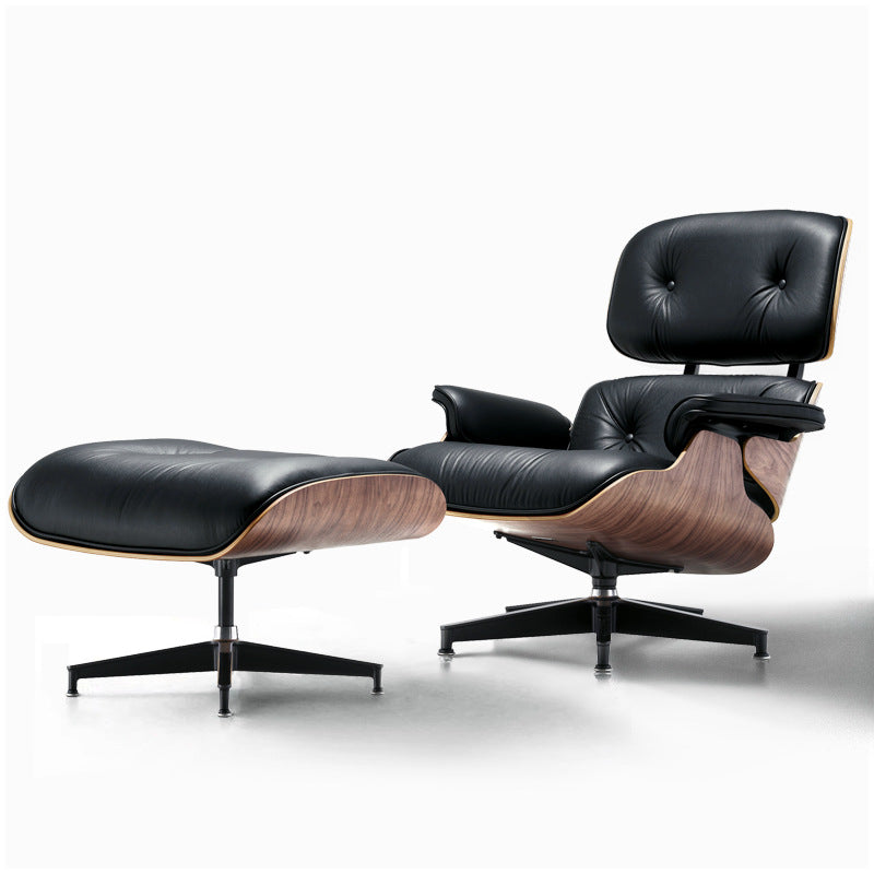 Eames Recliner+Pedal/Black/V Genuine Leather