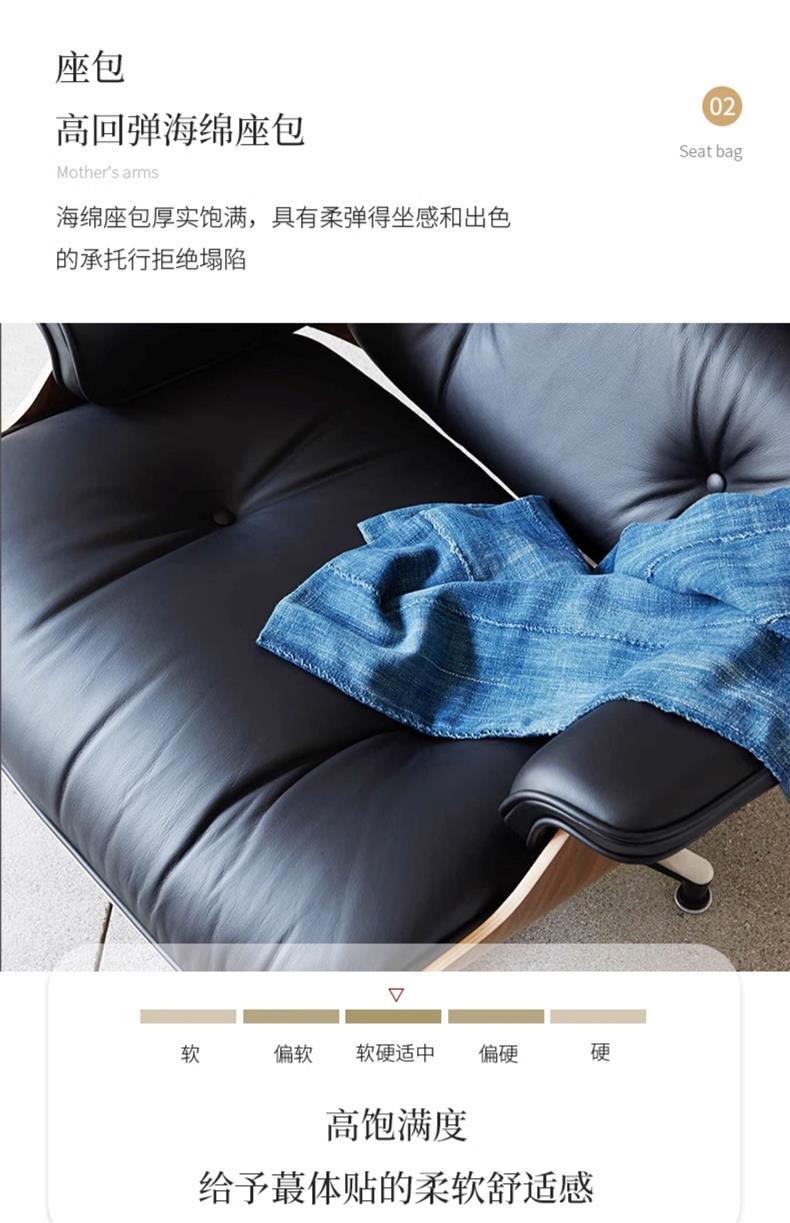 Eames Recliner+Pedal/Black/S Genuine Leather