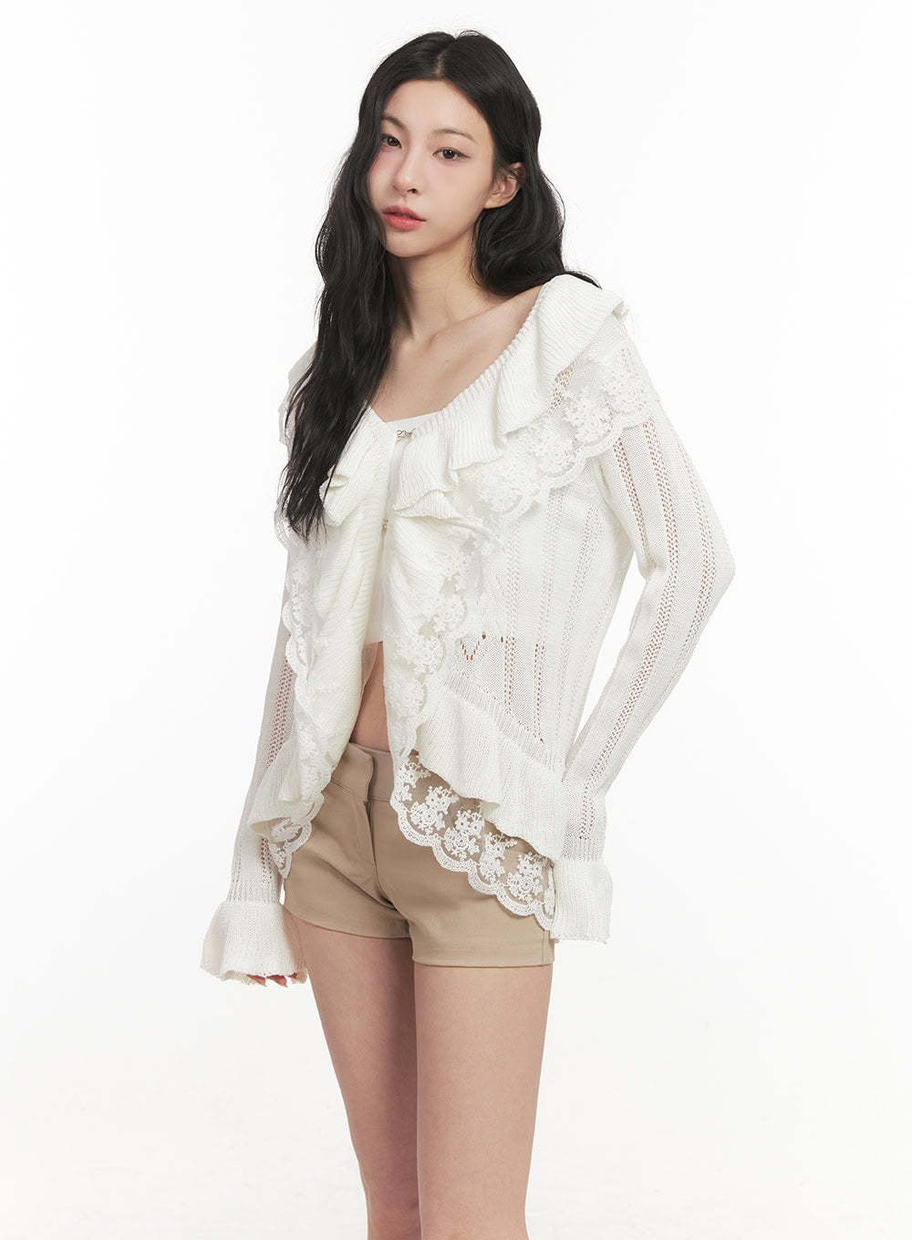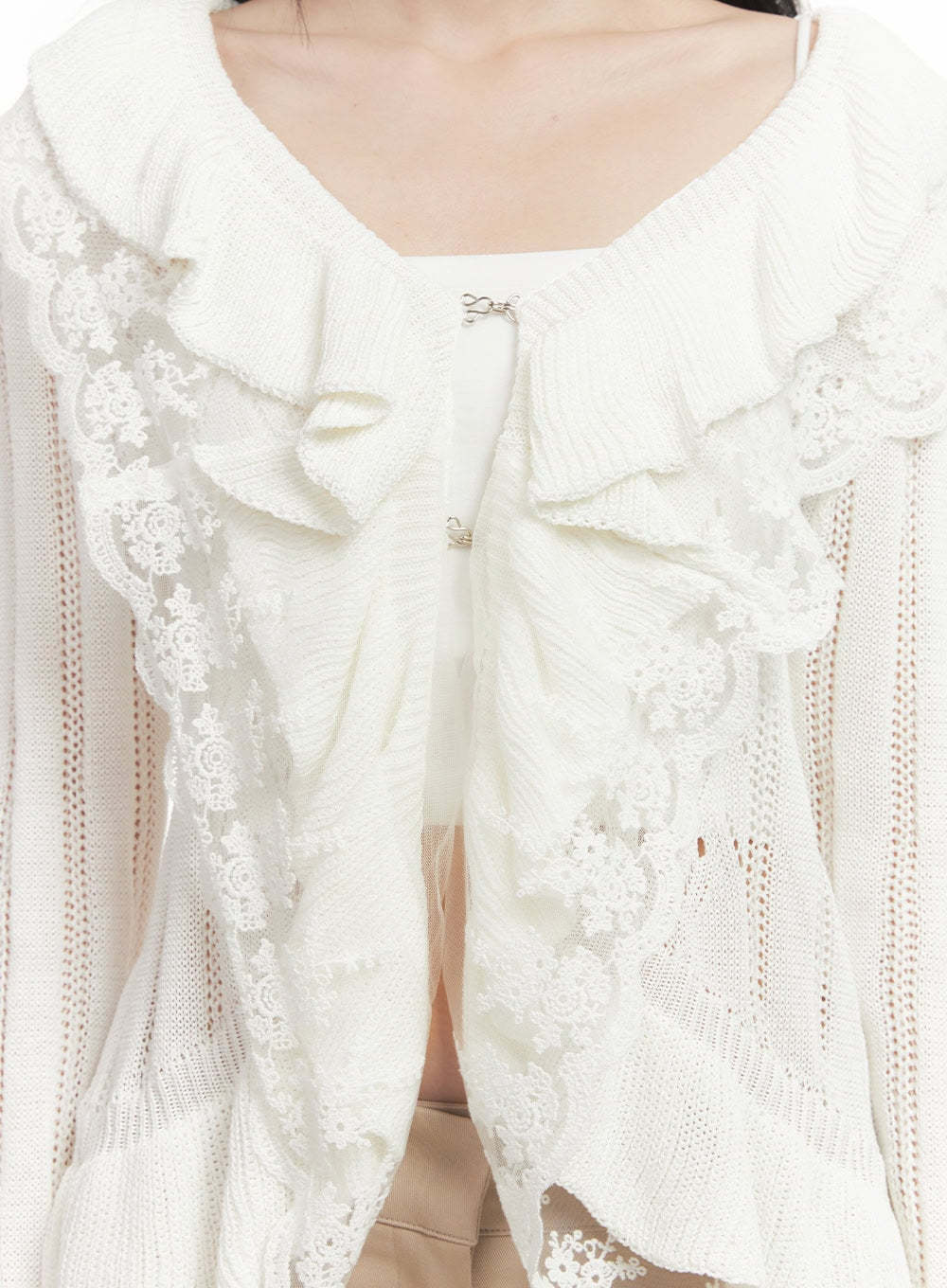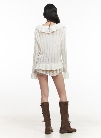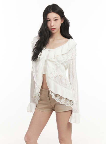 Frill Lace V-Neck Knit Cardigan CF513