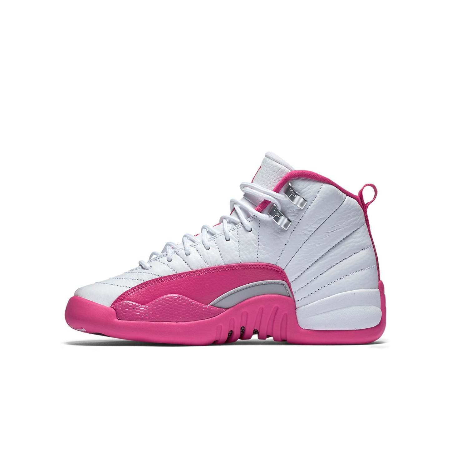 The Air Jordan 12 Retro 'Vivid Pink' is an iconic sneaker with a unique asymmetrical design. Inspired by women's high heels, the shoe features a white leather upper with a pink mudguard for a stylish and protective look. This sneaker is perfect for any activity and is sure to make a statement. The Air Jordan 12 was the first Air Jordan to be released in mainland China, making it an important part of Jordan Brand's history. The 'Vivid Pink' colorway is sure to turn heads with its vibrant pink accents and white leather upper. The rubber sole ensures maximum comfort and durability. Get your hands on this timeless classic today!