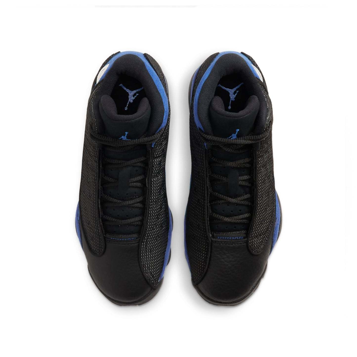The Air Jordan 13 Retro GS 'Black Royal' is a perfect example of form meeting function. A classic basketball shoe that looks good on and off the court, the Air Jordan 13 Retro GS 'Black Royal' is designed for big kids. The two-tone colorway of black and royal blue is inspired by MJ's 'Black Cat' persona, and the reflective mesh overlay adds a touch of luxury. The phylon midsole provides lightweight cushioning and the herringbone rubber outsole gives maximum grip. Whether you're shooting hoops or just hitting the streets, the Air Jordan 13 Retro GS 'Black Royal' is a must-have.