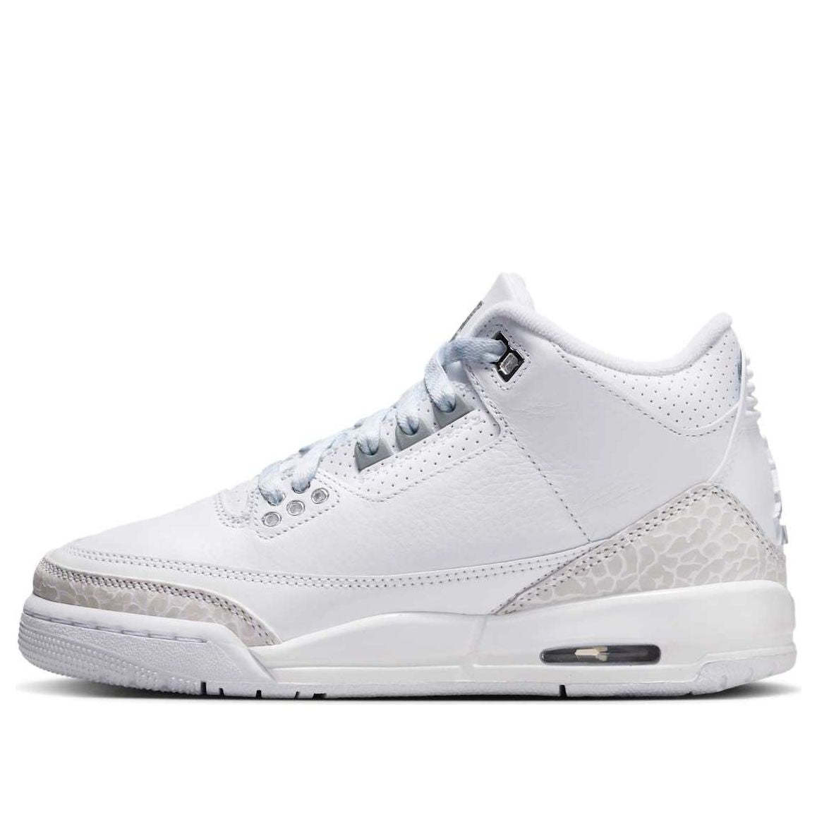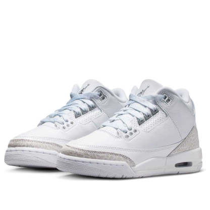 The Air Jordan 3 "Pure Money" returns in Fall 2025 after an 18-year absence. This all-white retro, featuring elephant print laces and silver accents, echoes Jordan Brand's luxurious lifestyle era.