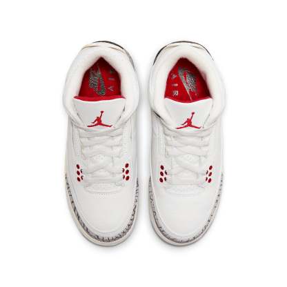 The Air Jordan 3 Retro 'White Cement Reimagined' is a classic sneaker that pays homage to the 35th anniversary of its original design. Featuring a timeless colorway of Summit White, Fire Red, Black and Cement Grey, this sneaker is perfect for any activity. The combination of classic and modern aesthetics, along with the signature Nike Air logo on the heel, gives this sneaker a unique look that stands out. The high-quality leather detailing and rubber sole provide the perfect balance of comfort and style, making it the perfect choice for any occasion.