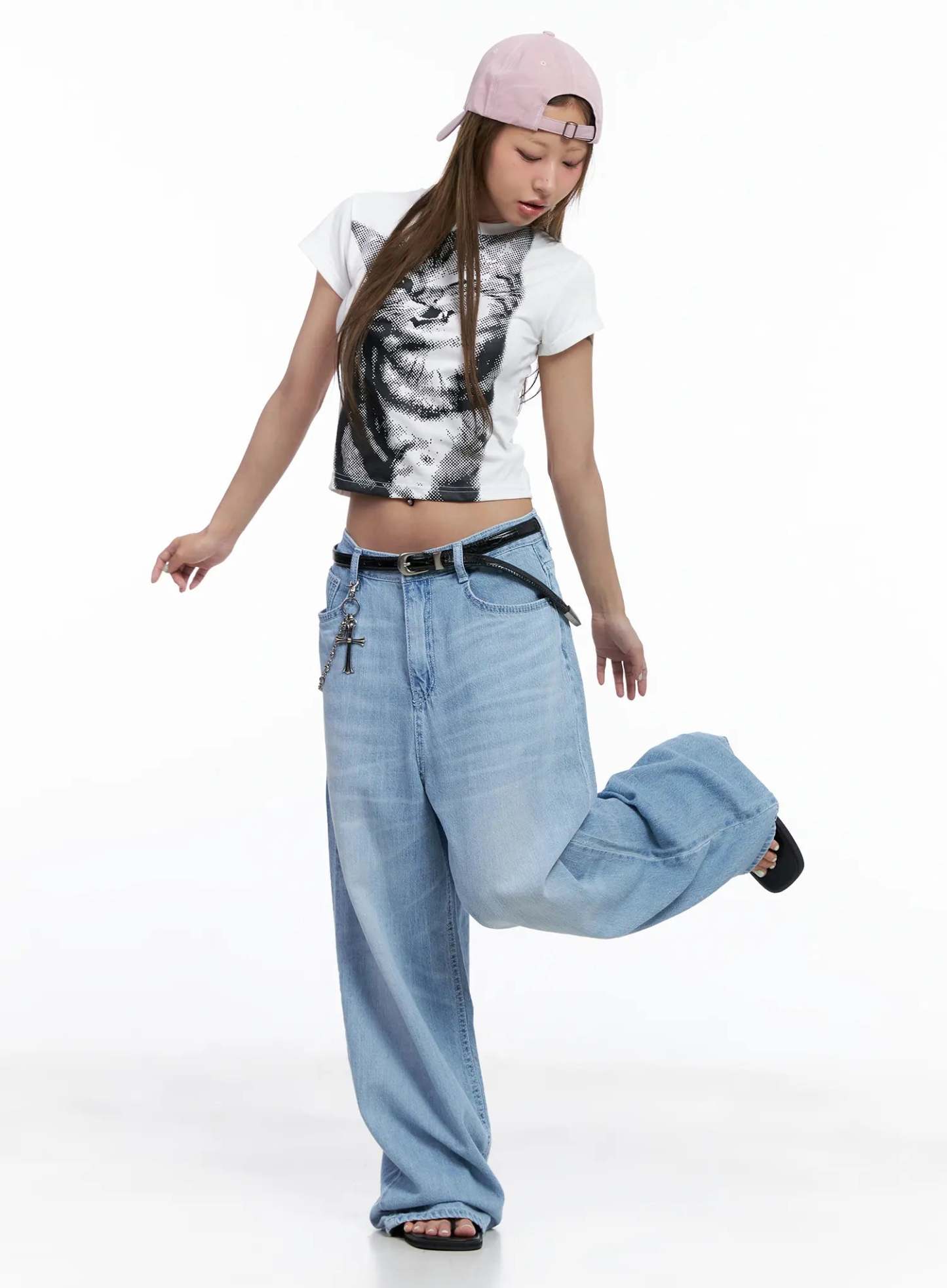 Hyoyeon Washed Balloon Wide-Leg Summer Denim Jeans CL510