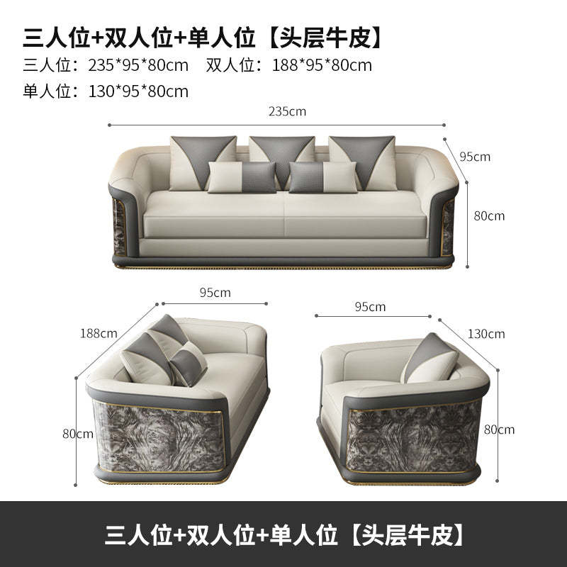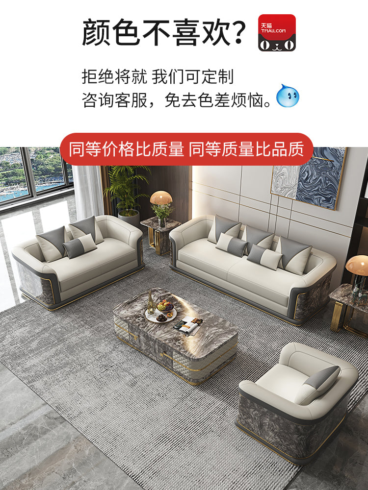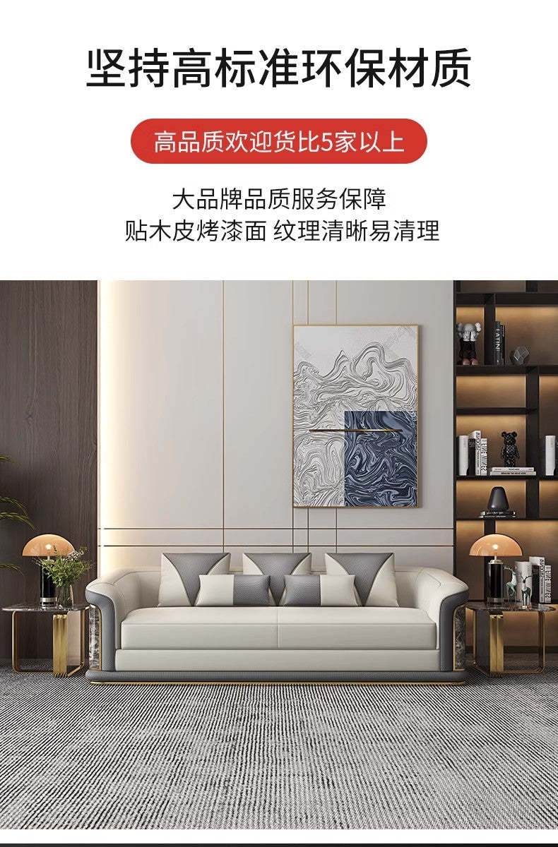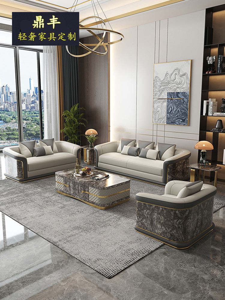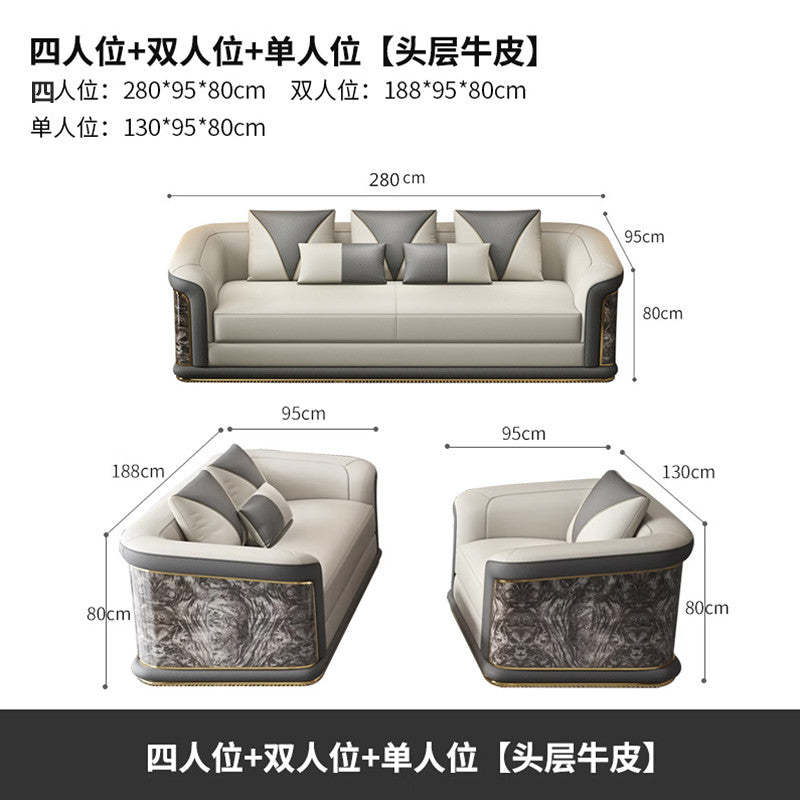Italian Style Light Luxury Living Room Lacquered Genuine Leather Sofa Large Apartment High-End Villa Designer Mansion Whole House Furniture Customization