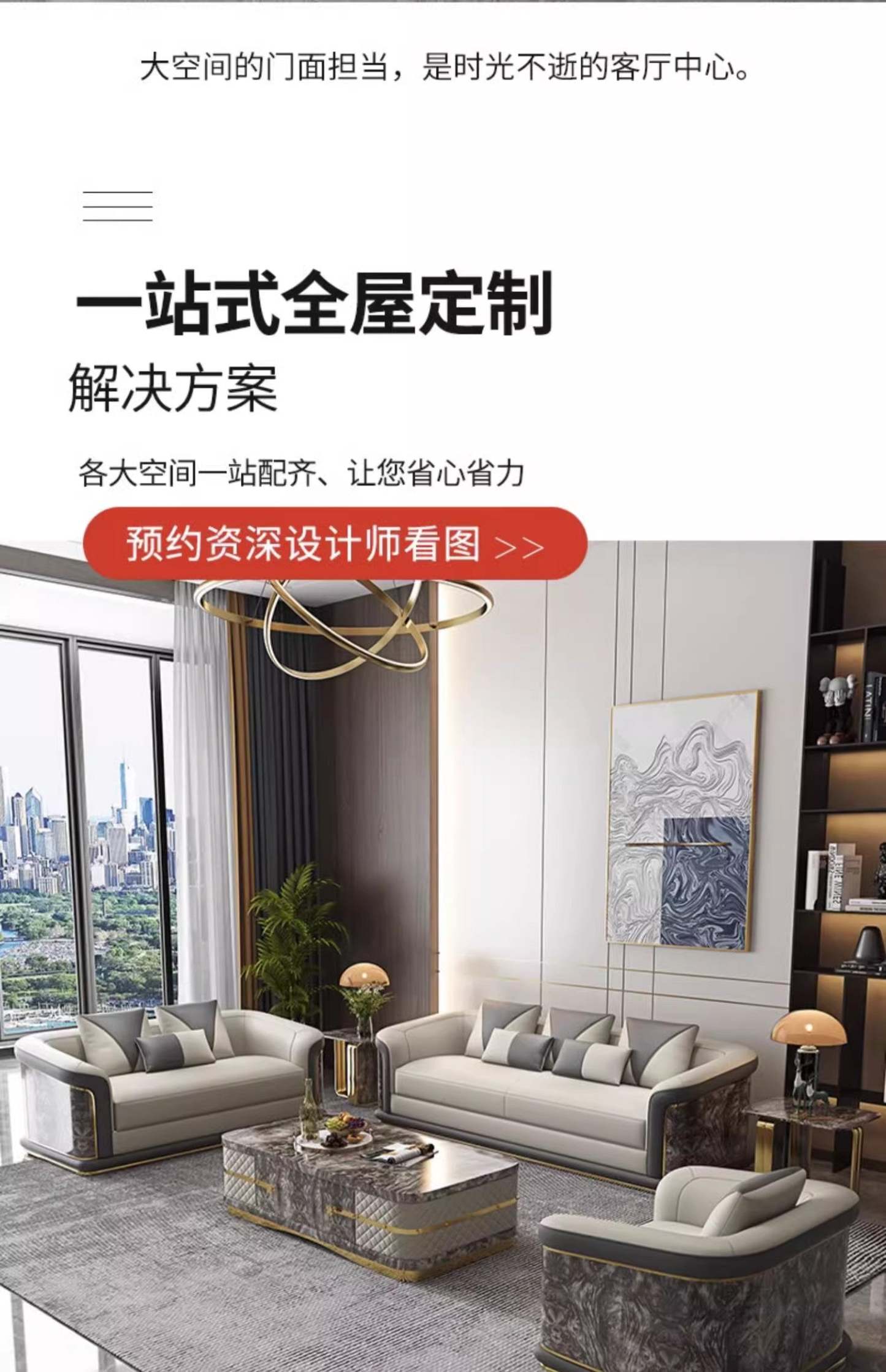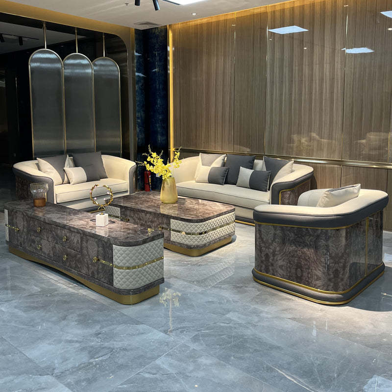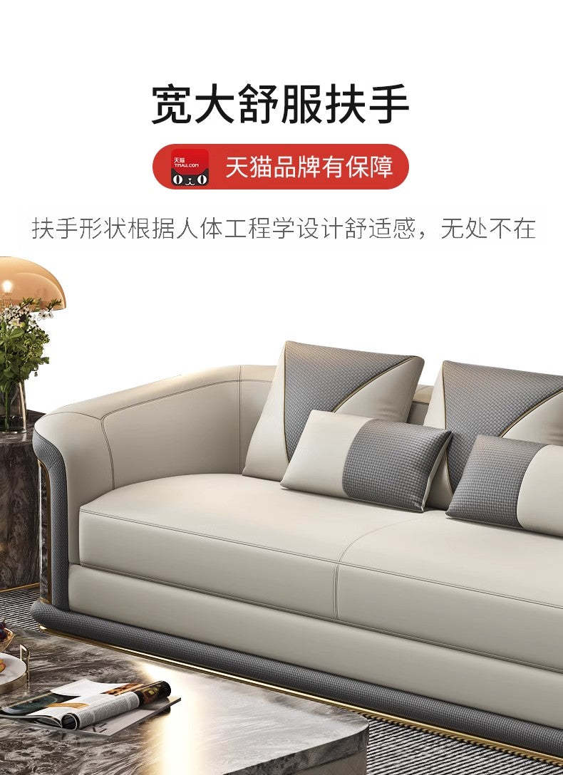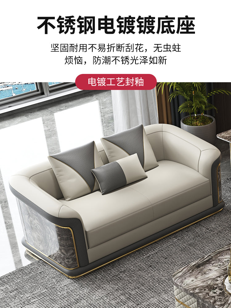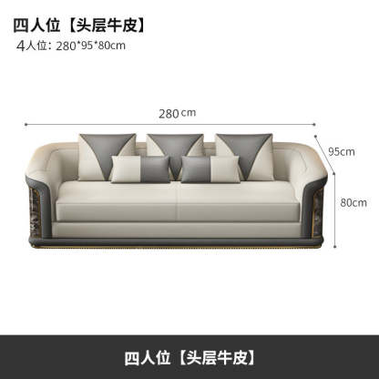 Italian Style Light Luxury Living Room Lacquered Genuine Leather Sofa Large Apartment High-End Villa Designer Mansion Whole House Furniture Customization