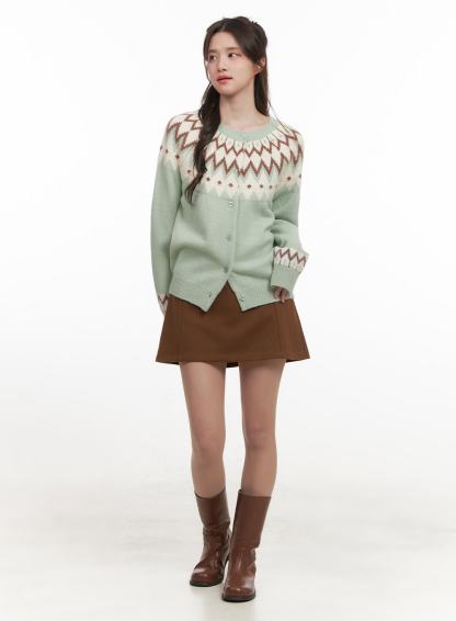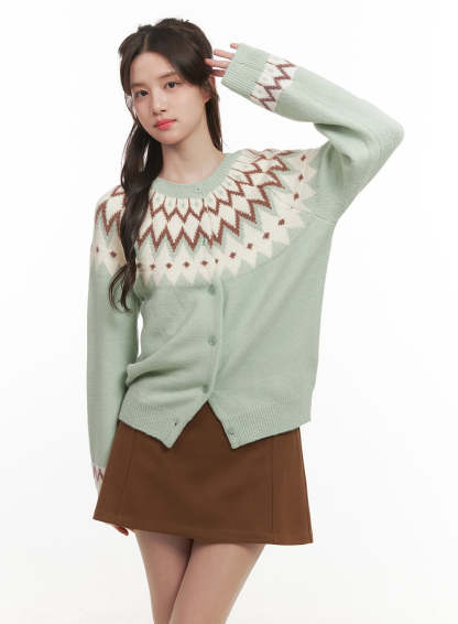 Nordic Print Buttoned Cardigan CJ515