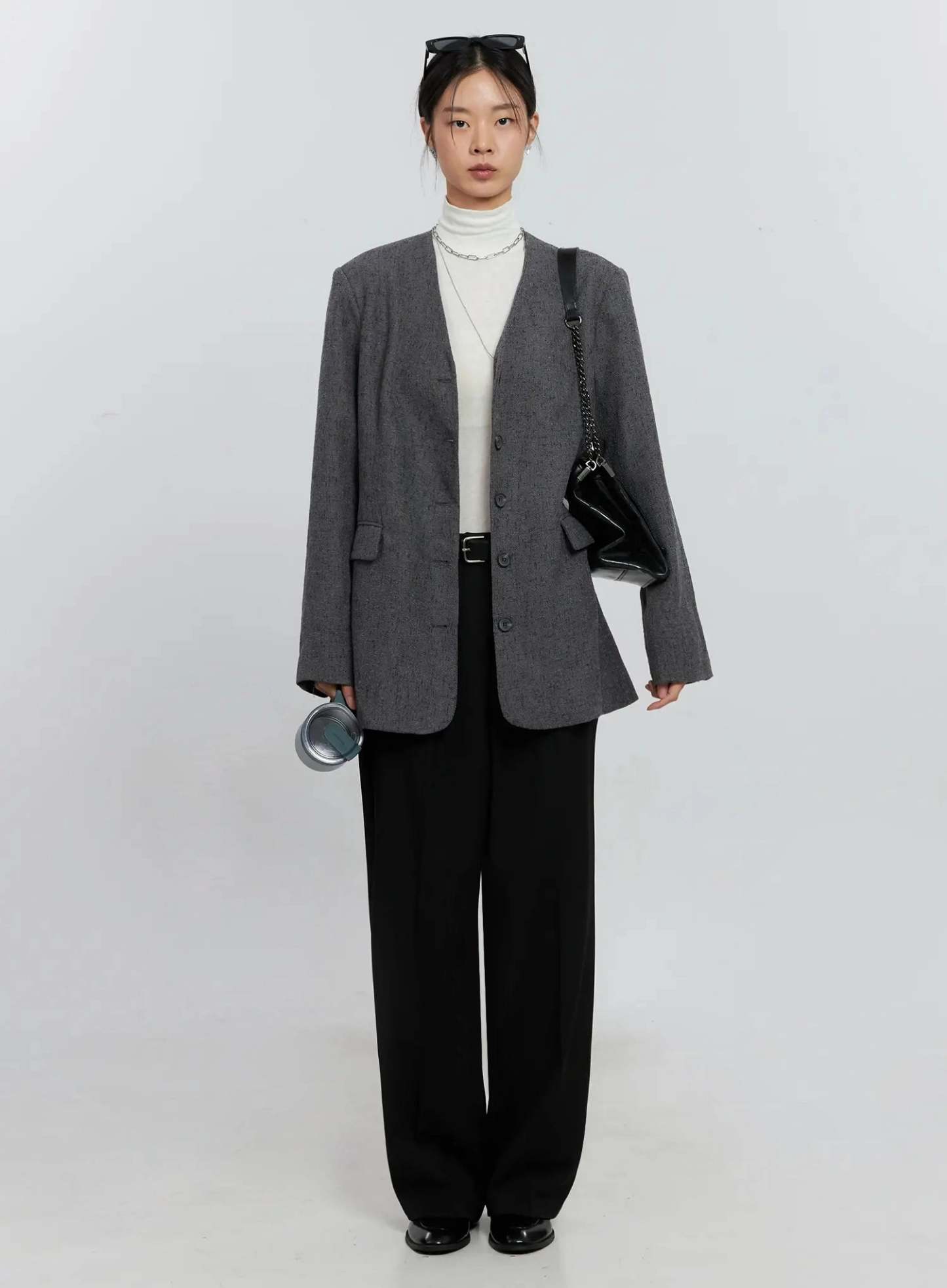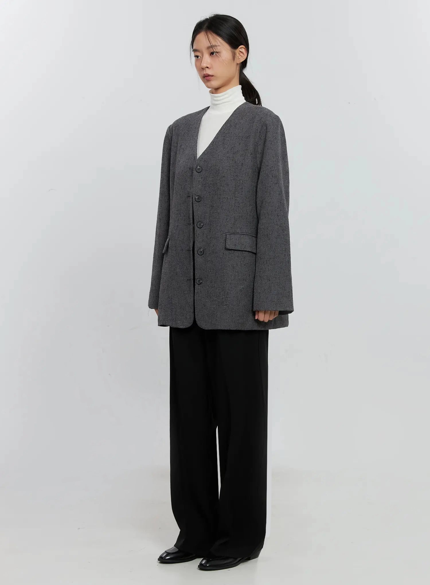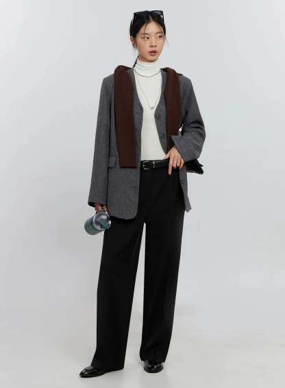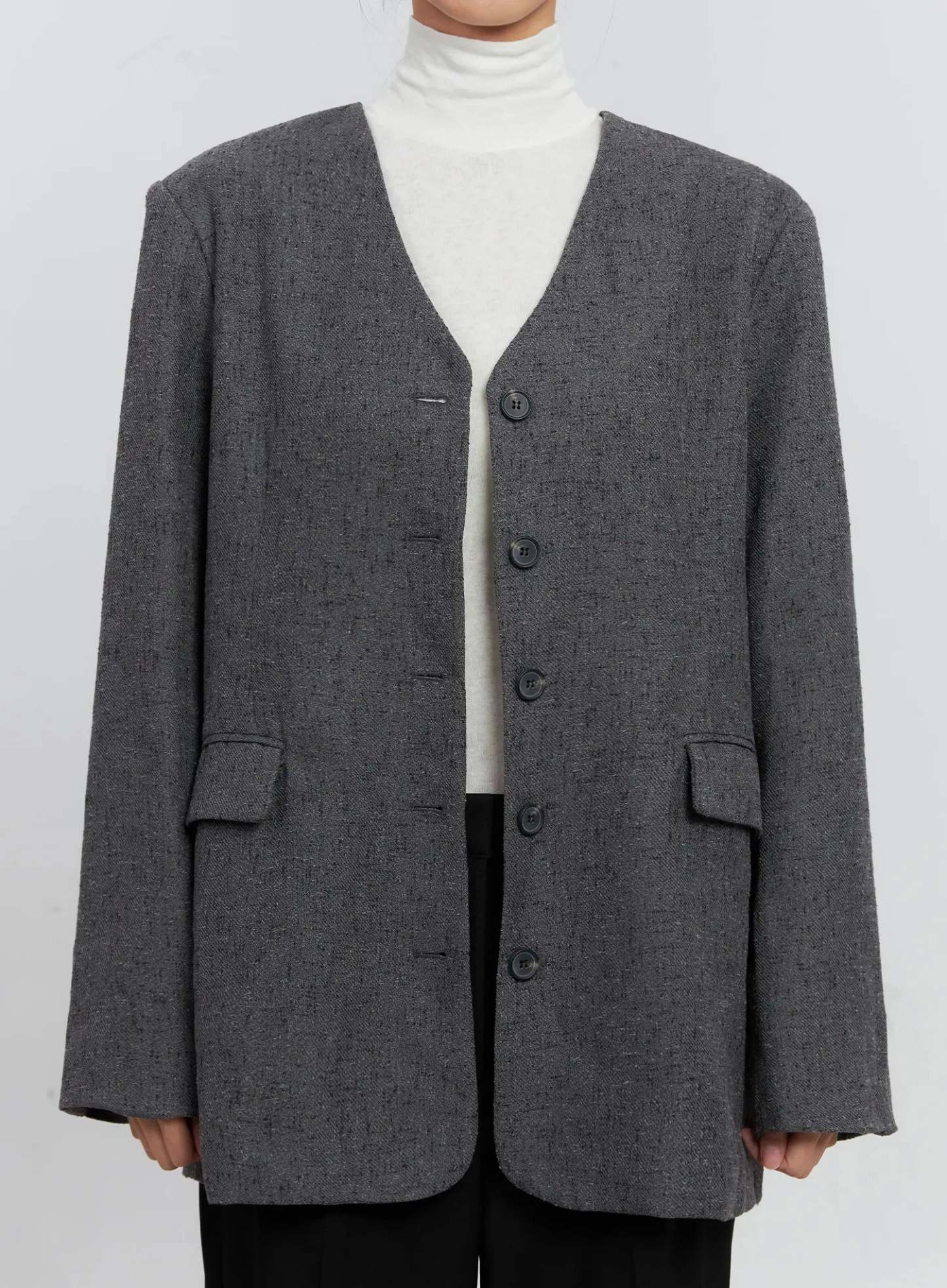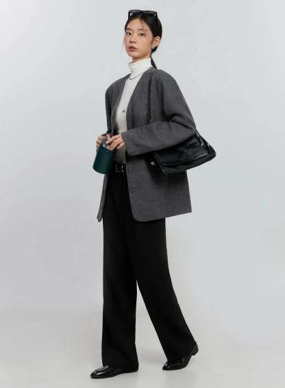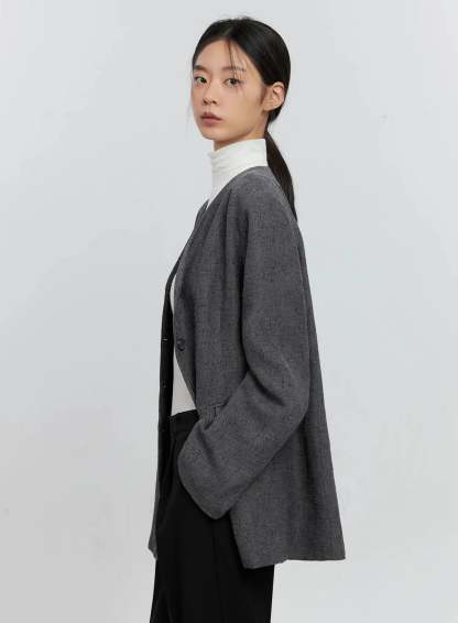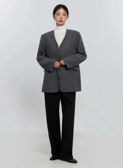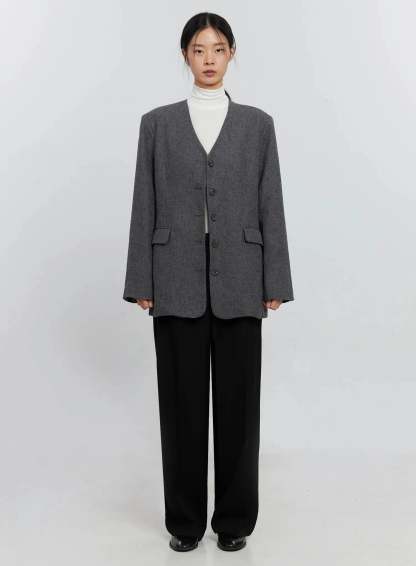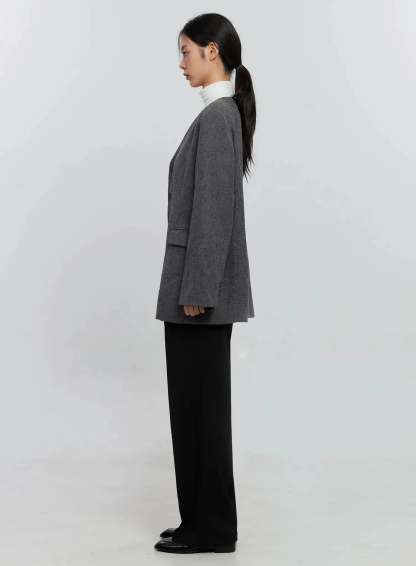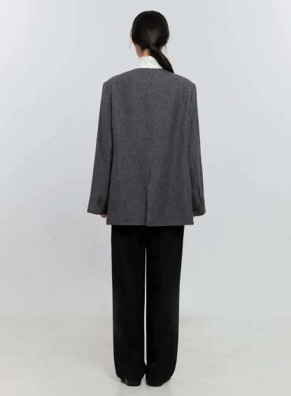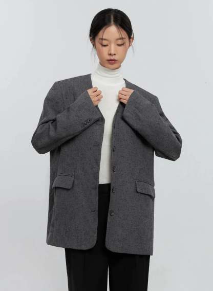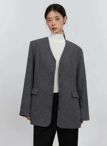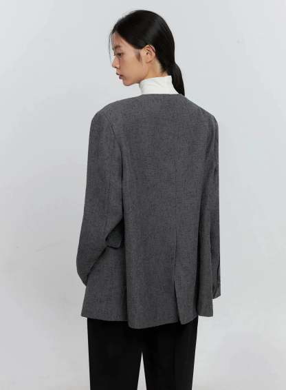 Oversized Collarless Blazer IS516