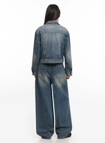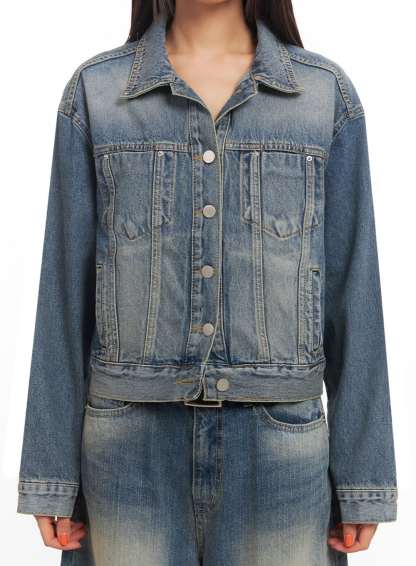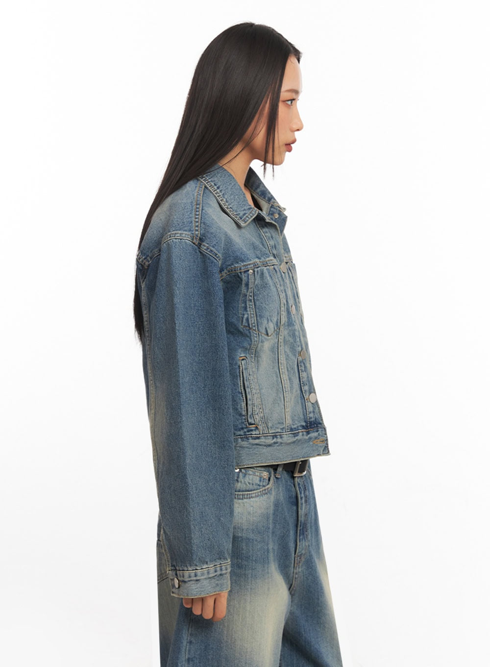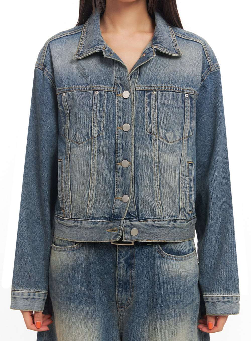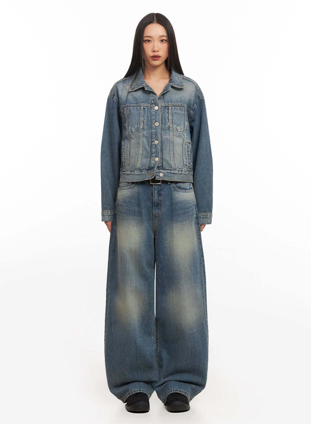 Style : Street, CasualOccasion : Back to schoolDetail : ButtonedPrint : WashedMaterial : Cotton, DenimSleeve : Long sleeveNeck : CollarCotton 100%Color : BlueMade in KoreaModel Size