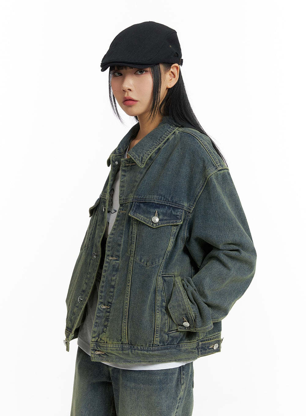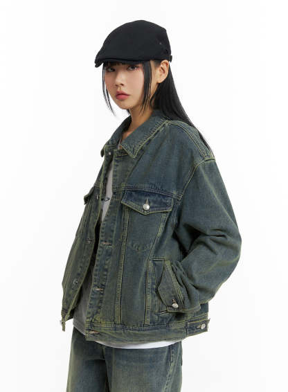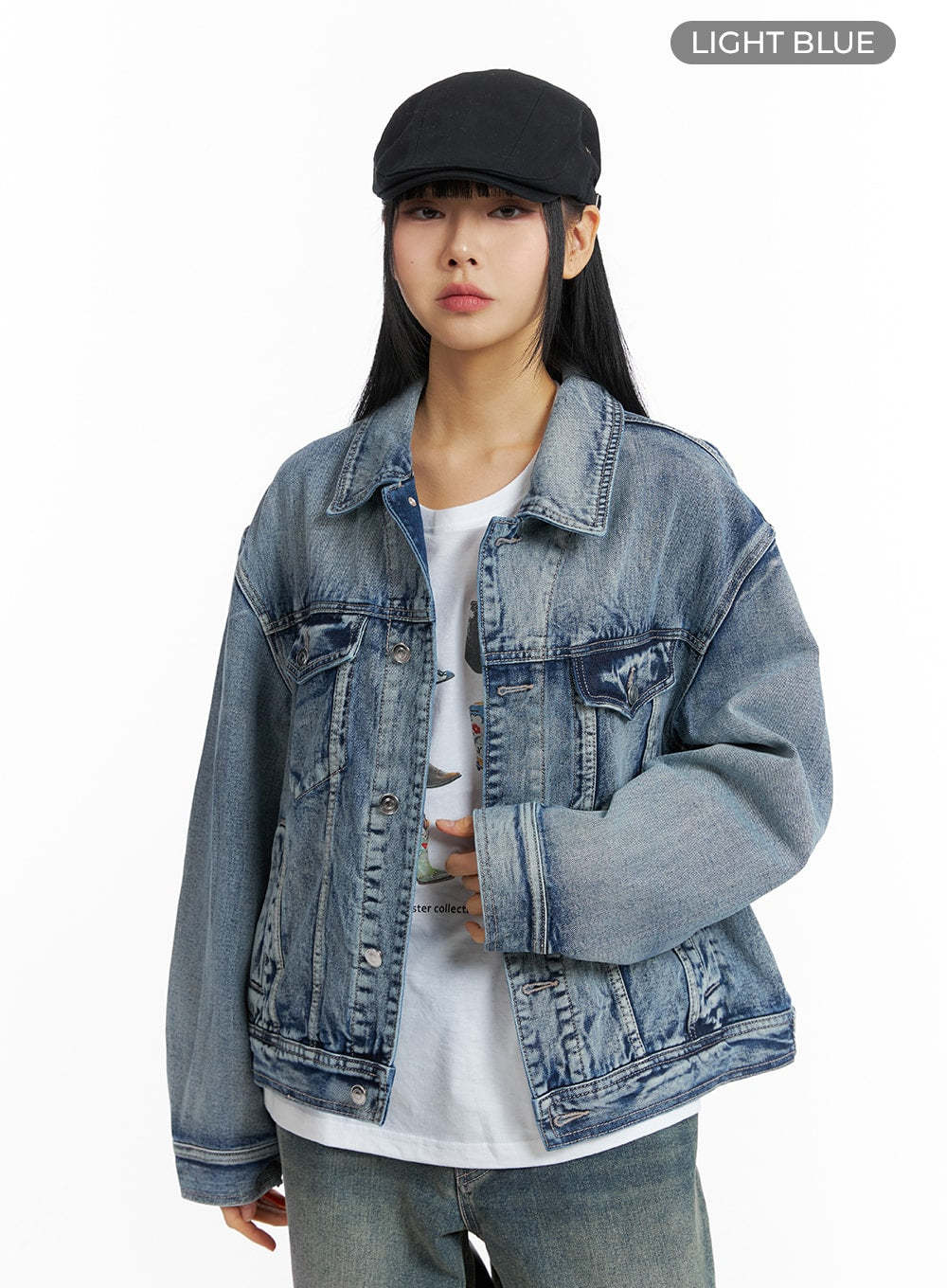 Style : Street, CasualOccasion : Back to schoolType : UnisexDetail : ButtonedPrint : WashedMaterial : Cotton, DenimSleeve : Long sleeveNeck : CollarLength : RegularFit : Loose fitCotton100Color : Light blue, Blue, BlackMade in KoreaModel Size