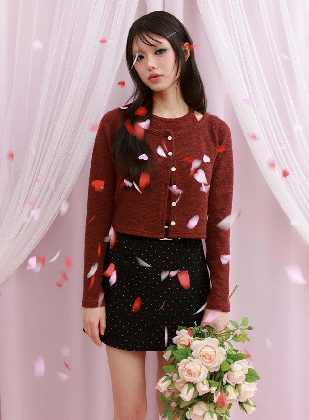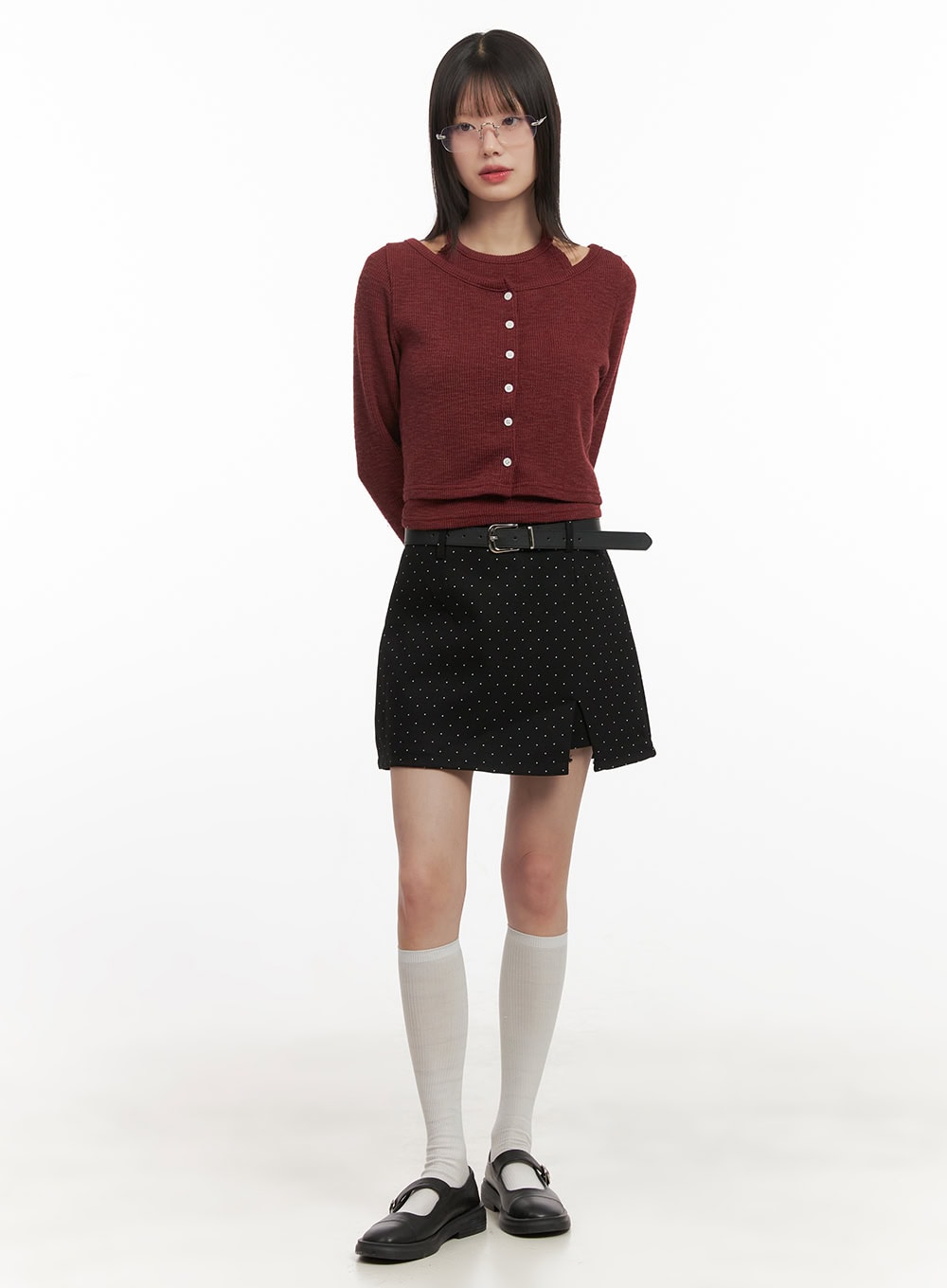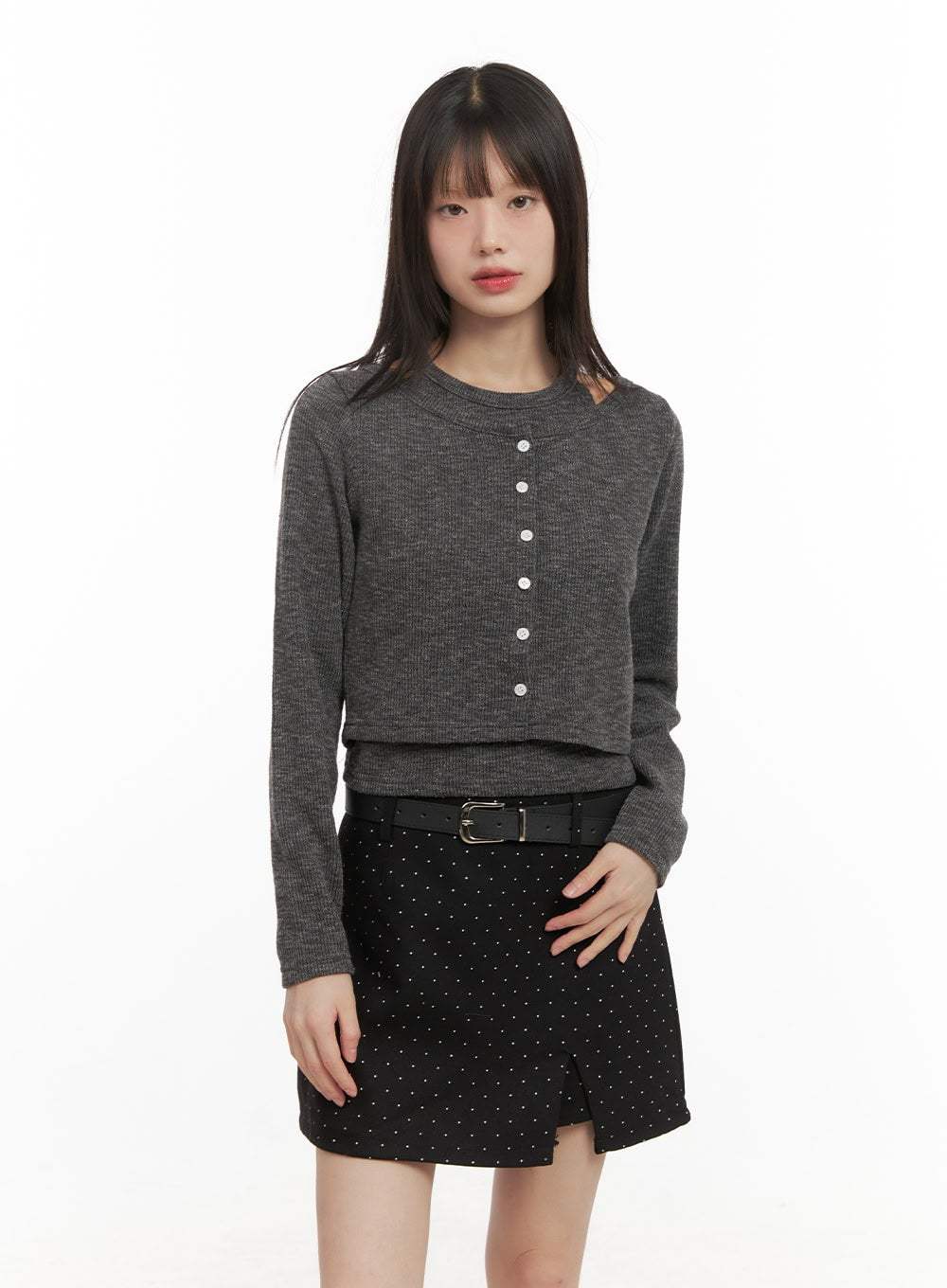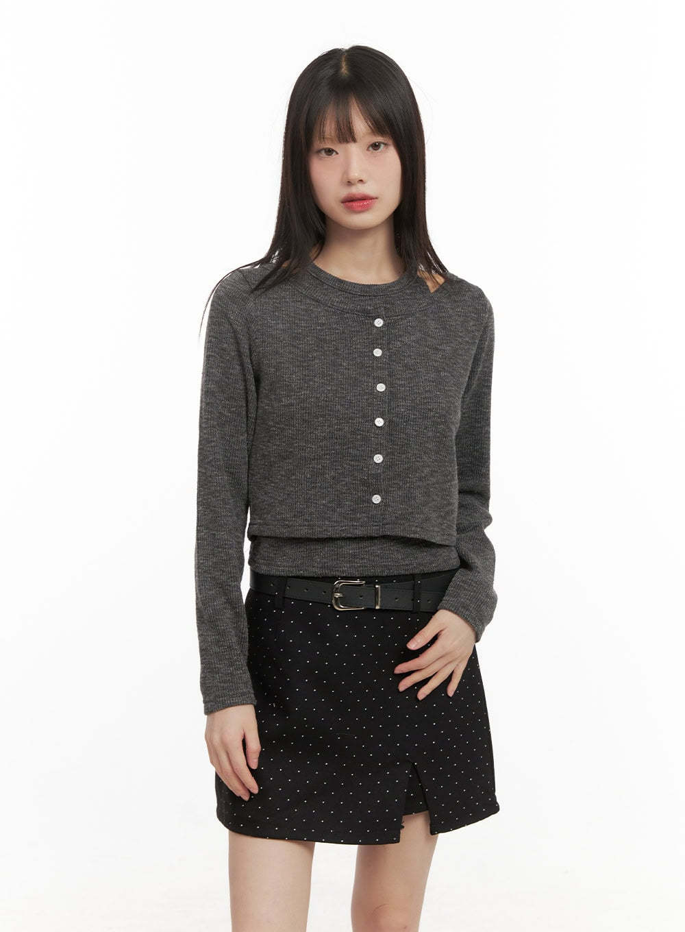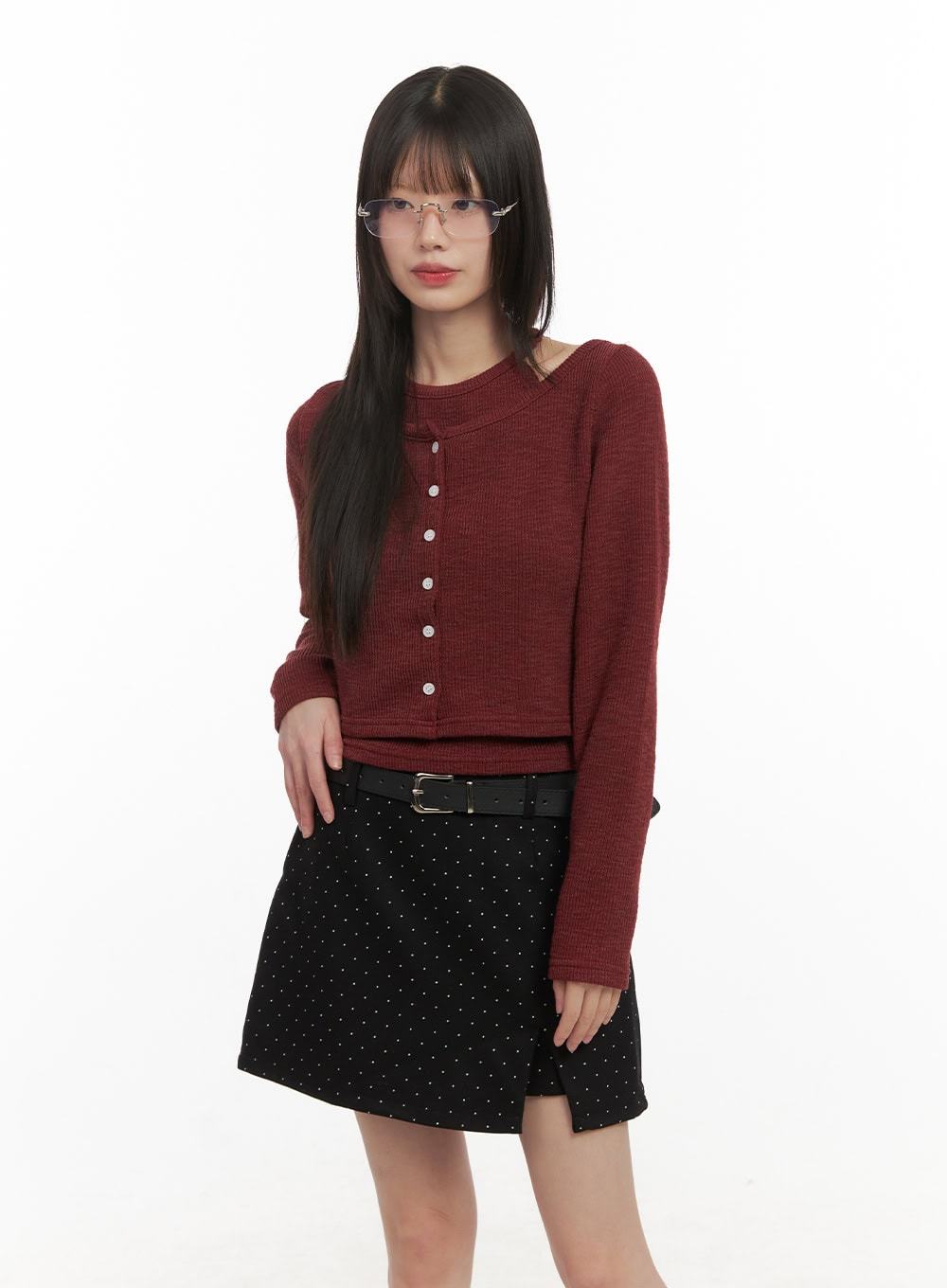 Style : Street, AcubiOccasion : Festival, Back to schoolDetail : ButtonedPrint : SolidMaterial : Cotton, Polyester, Spandex, RayonSleeve : Long sleeveLength : CropPolyester 75% , Cotton 15% , Rayon 7% , Spandex 3%Color : Black, Dark gray, Dark redMade in KoreaModel Size