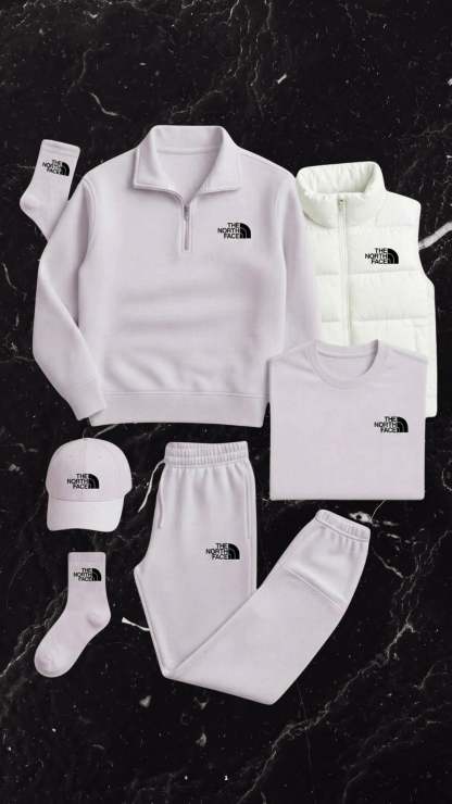 Discover the effortless elegance of The North Face with this complete set including a hoodie, joggers, a matching cap and socks