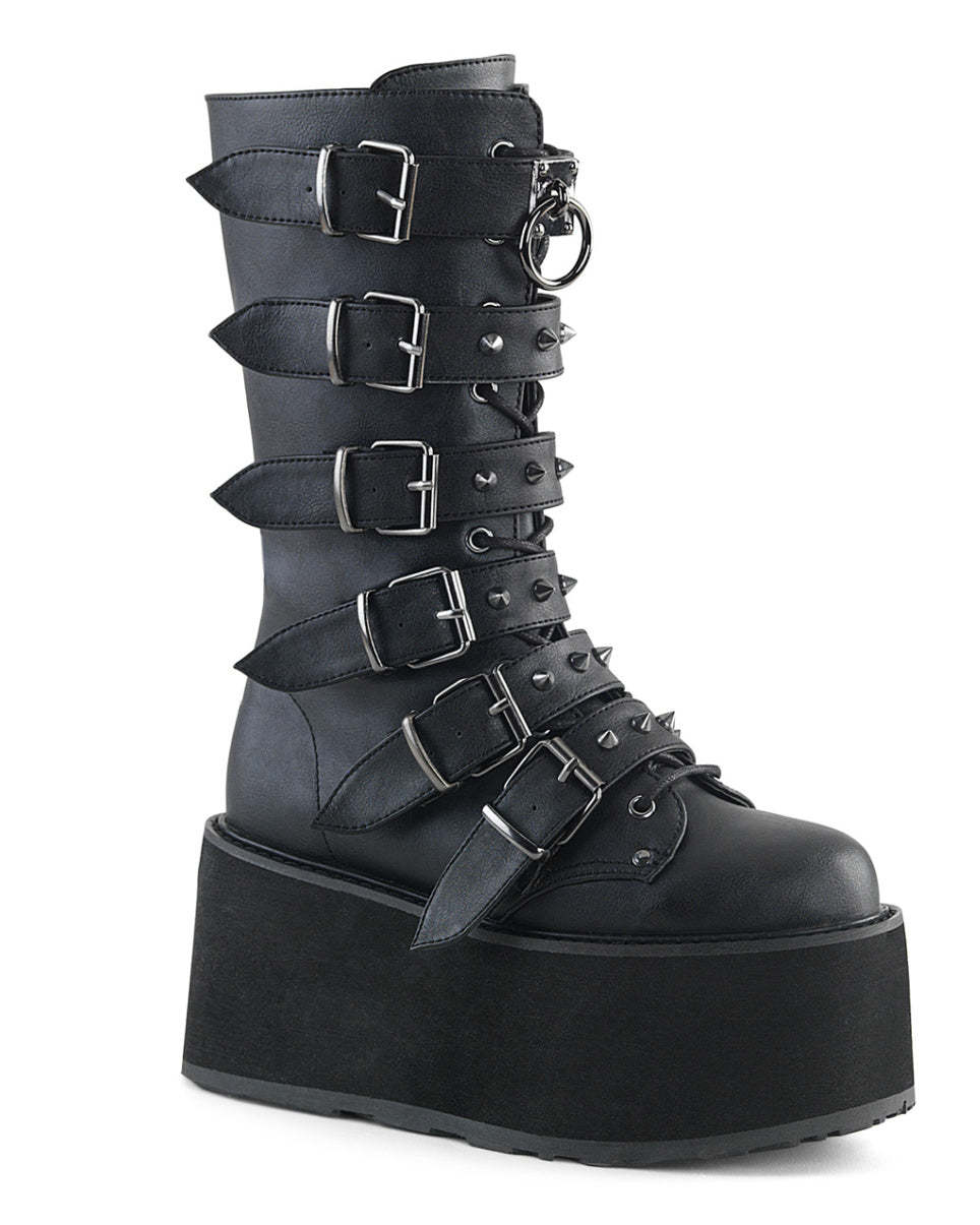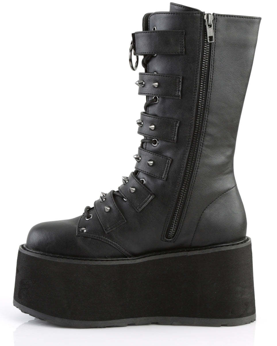 Time to show your feet some love and dance the night away in these amazing buckled studded vegan platform boots. Comes with full side-zip closure for easy on off wear!