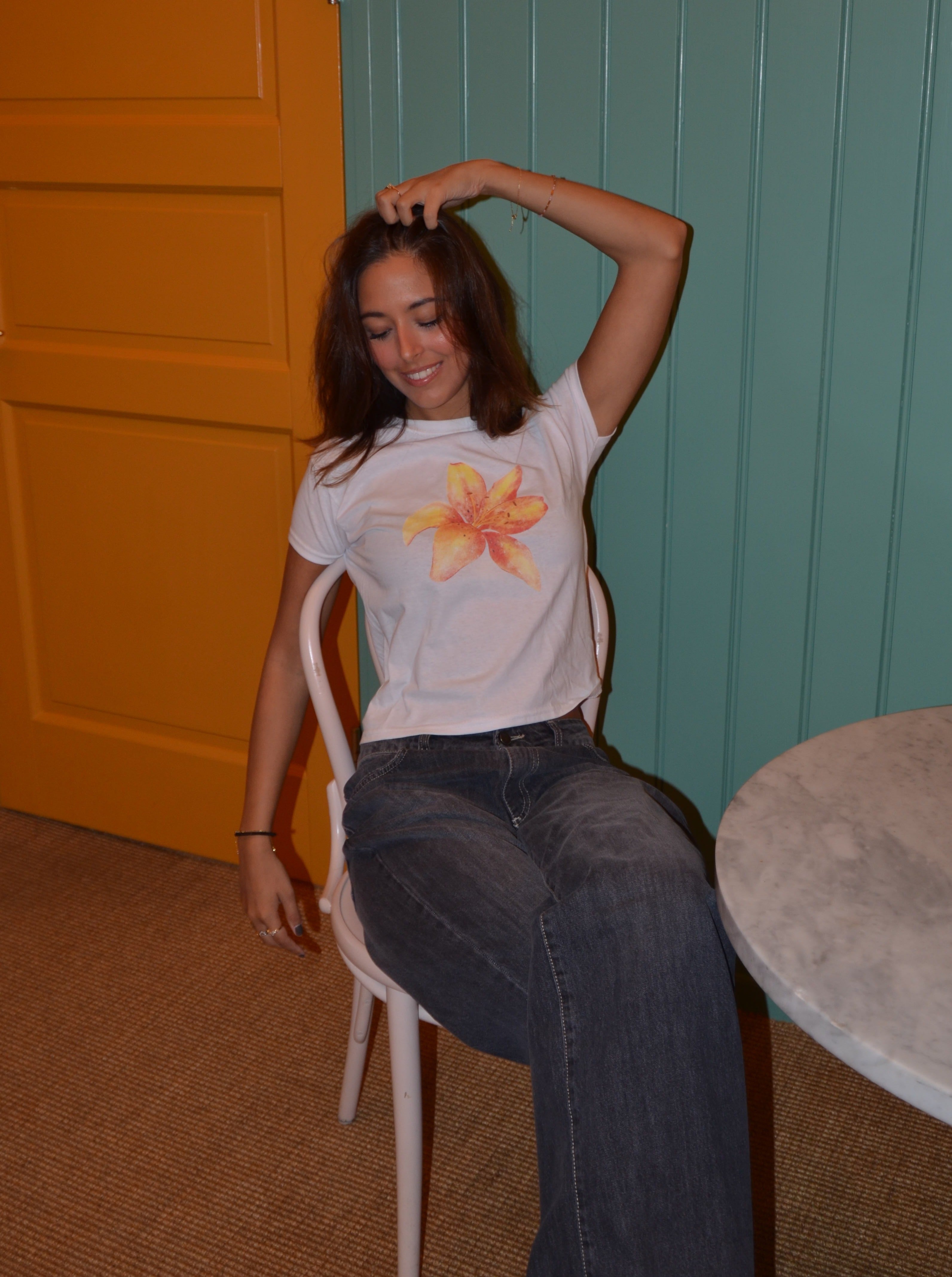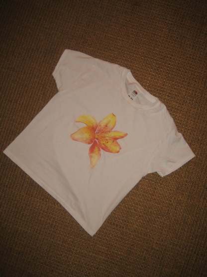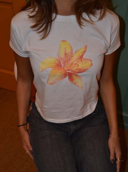Baby tee with a "Yellow lily" on it. Our tees are from fruit of the loom and in a super soft and comfortable quality.