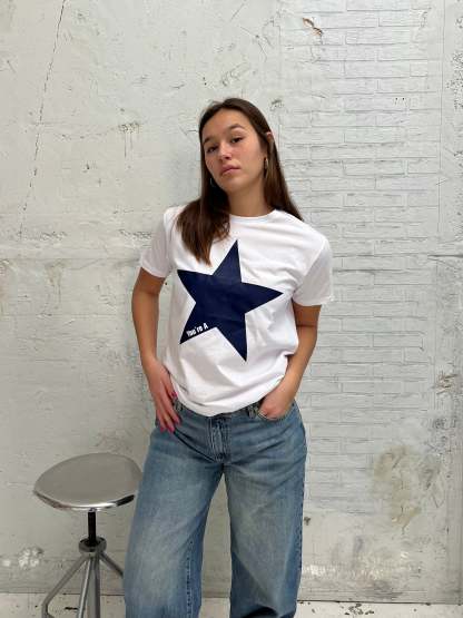 Tee with navy star symbol. Our tees are in a super soft and comfortable quality.